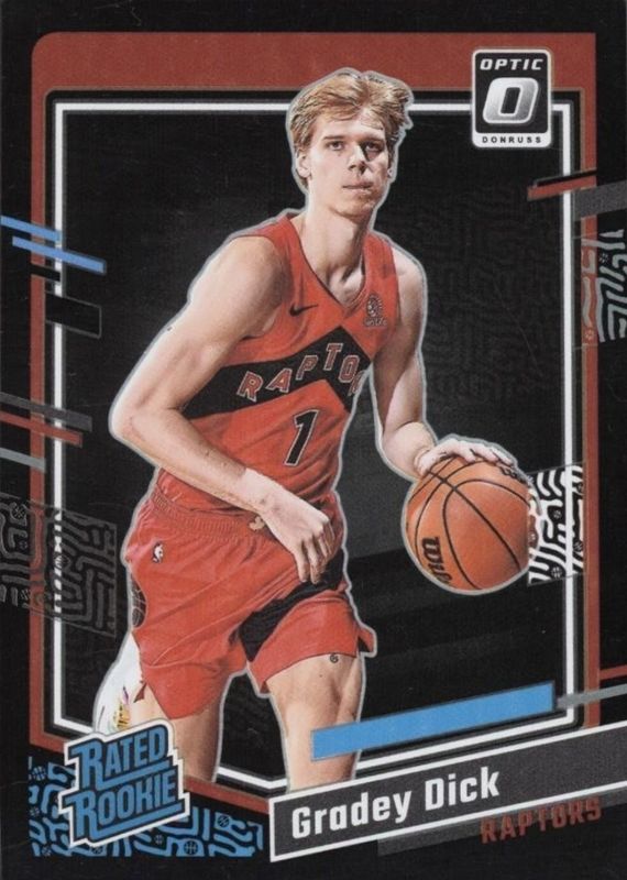 This card is 1 of 82 Gradey Dick's card variations in the 2023 Optic set being tracked by Sports Card Investor, including Base, Blue Velocity, Checkerboard, Choice, and Choice Red & Green.