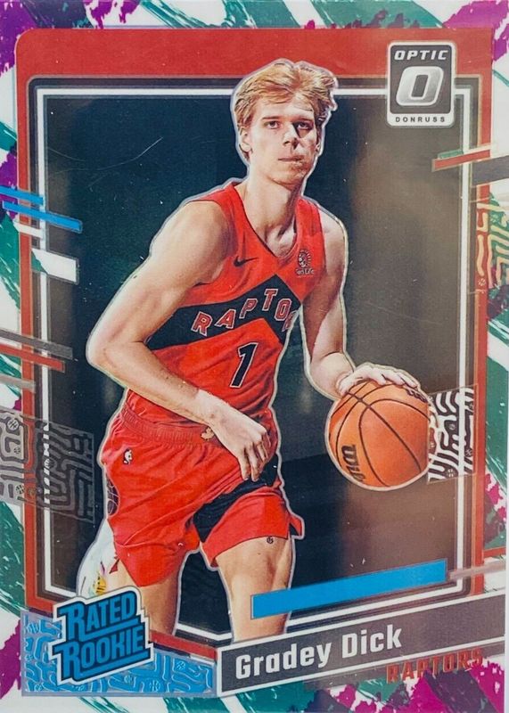 The Gradey Dick 2023 Optic #212 Jazz /(SSP) Rookie card in Raw condition has not changed in price in the last 30 days and was last sold for $3.25 .