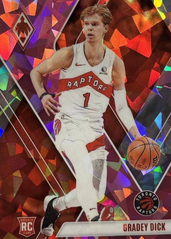 This card is 1 of 74 Gradey Dick's card variations in the 2023 Phoenix set being tracked by Sports Card Investor, including Base, Blue Ice, Color Burst, Dream Weaver, and Hieroglyphs.
