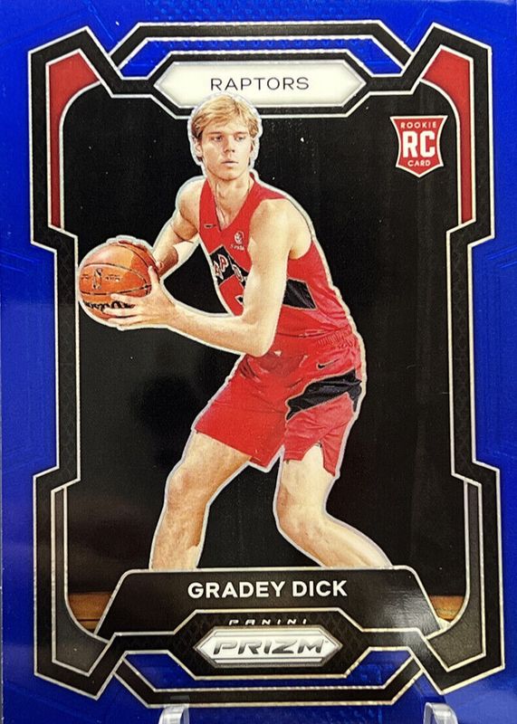 The Gradey Dick 2023 Prizm #134 Blue /199 Rookie card in Raw condition has not changed in price in the last 30 days and was last sold for $6.50 .