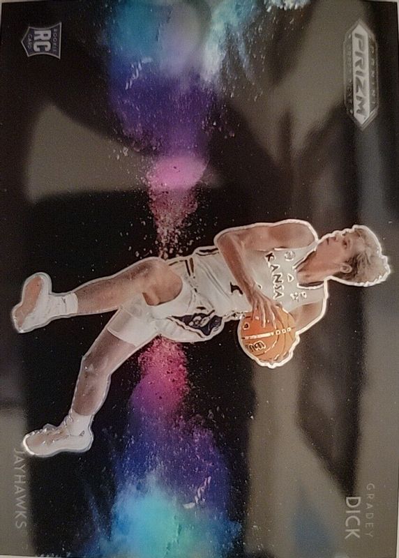 This card is 1 of 6 Gradey Dick's card variations in the 2023 Prizm Draft Picks set being tracked by Sports Card Investor, including Color Blast /(SSP), Color Wheel /(SSP), Manga /(SSP), On Campus /(SSP), and Stained Glass /(SSP).