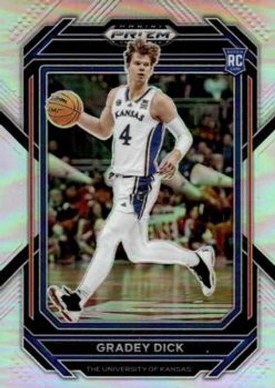 The Gradey Dick 2023 Prizm Draft Picks #84 Silver Rookie card is 1 of 125 Gradey Dick's card variations in the 2023 Prizm Draft Picks set being tracked by Sports Card Investor, including Base, Variation, Choice Blue Yellow Green, Green, and Green Wave.