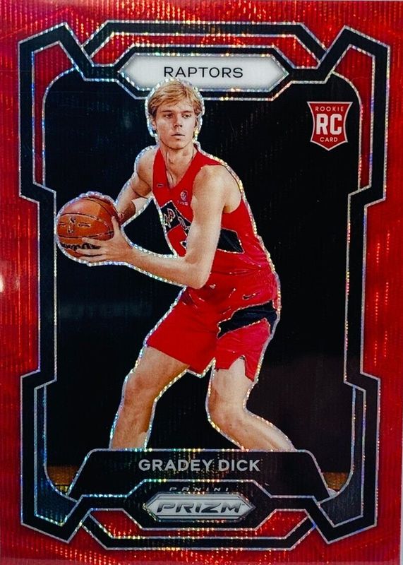 2023-24 Prizm Gradey Dick RC Prizms Ruby Wave Rookie #134 Raptors