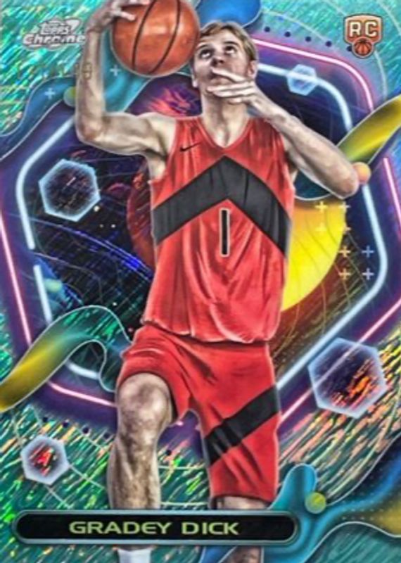 This card is 1 of 37 Gradey Dick's card variations in the 2023 Topps Chrome Cosmic set being tracked by Sports Card Investor, including Base, Nucleus Refractor, Pink Galaxy Refractor, Refractor, and White Hole Refractor.