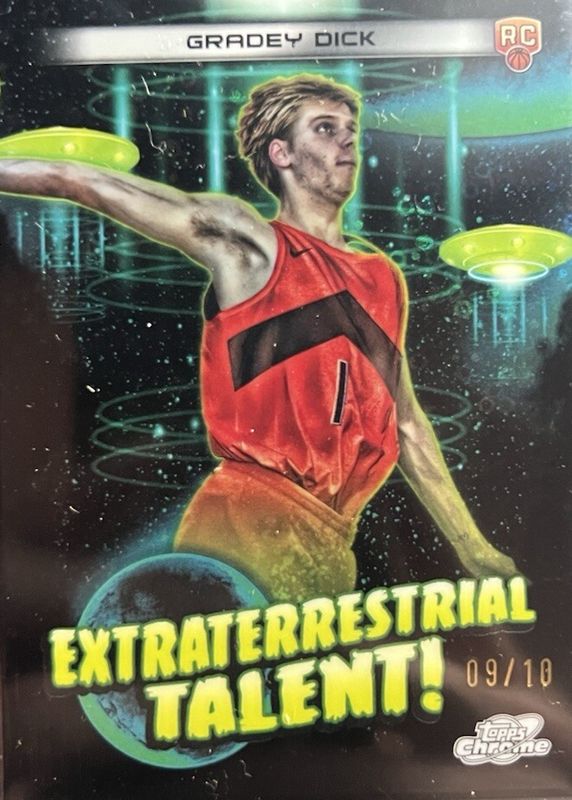 This card is 1 of 37 Gradey Dick's card variations in the 2023 Topps Chrome Cosmic set being tracked by Sports Card Investor, including Base, Nucleus Refractor, Pink Galaxy Refractor, Refractor, and White Hole Refractor.