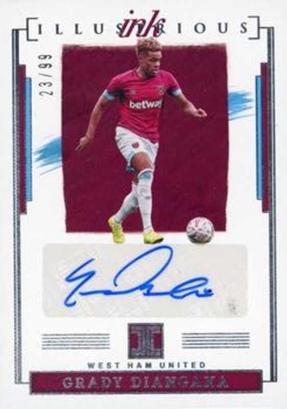 The Grady Diangana 2021 Impeccable Premier League #II-GRD Illustrious Ink /99 card is 1 of 18 Grady Diangana's card variations in the 2021 Impeccable Premier League set being tracked by Sports Card Investor, including Illustrious Ink - Ruby /35, Masterstrokes - Ruby /35, Masterstrokes /34, Illustrious Ink - Silver /25, and Masterstrokes - Silver /15.