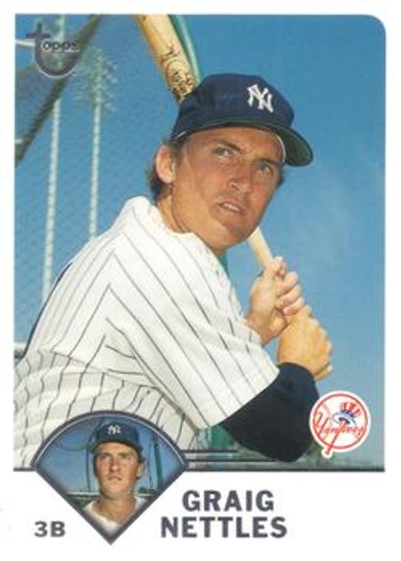 The Graig Nettles 2003 Topps Retired Signature Edition #74 Base card is 1 of 4 Graig Nettles' card variations in the 2003 Topps Retired Signature Edition set being tracked by Sports Card Investor, including Black /99, Autographs, and Autographs - Refractor /25.