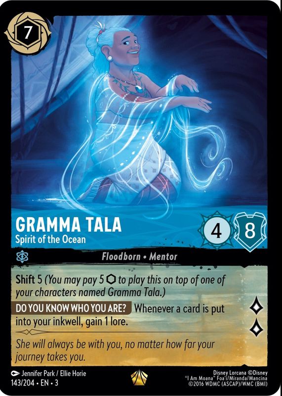 Gramma Tala Spirit of the Ocean 143/204 Into The Inklands Disney Lorcana NM/MINT