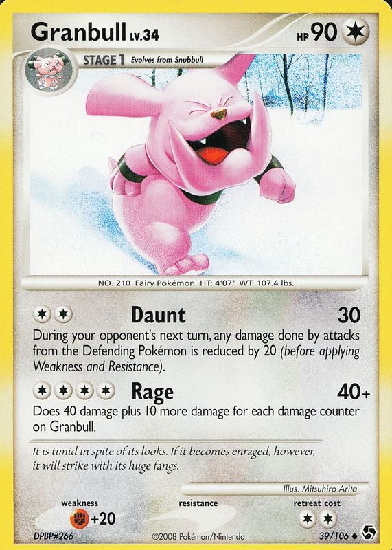 Granbull 2008 Diamond & Pearl: Great Encounters #039/106 Base RAW TCG (LIGHTLY PLAYED) Price Guide