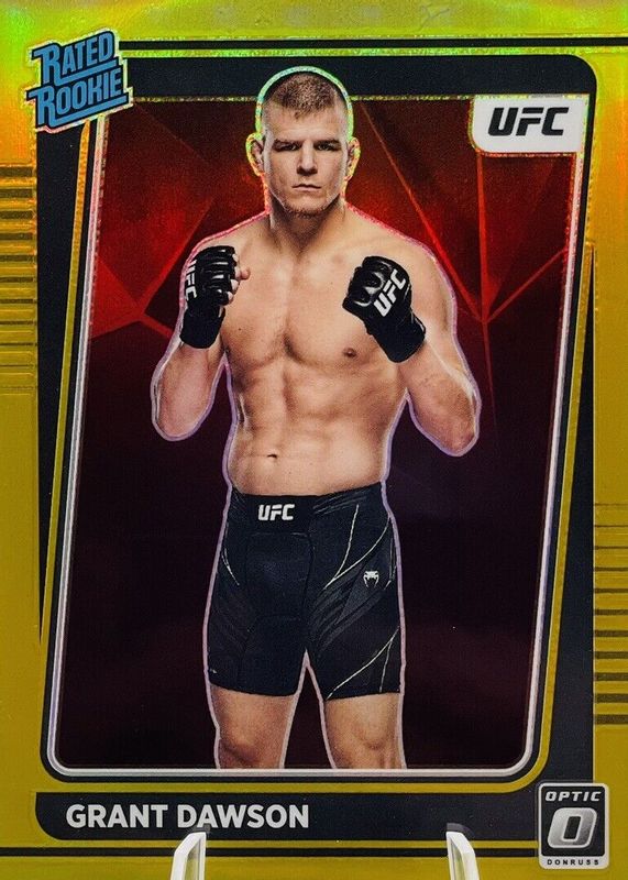 The Grant Dawson 2022 Optic UFC #101 Gold /10 Rookie card in Raw condition has not changed in price in the last 30 days and was last sold for $62.00 .
