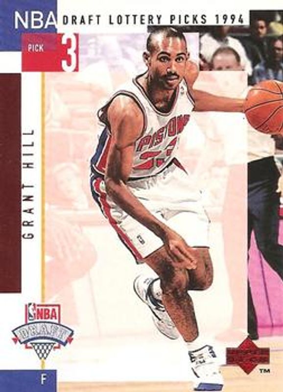 The Grant Hill 1994 Upper Deck #D3 NBA Draft Lottery Picks 1994 Rookie card is 1 of 8 Grant Hill's card variations in the 1994 Upper Deck set being tracked by Sports Card Investor, including #157 Base, #183 Base, #H32 Predictors: Award Winners, #H32 Predictors Exchange: Award Winners, and #RS3 Rookie Standouts.