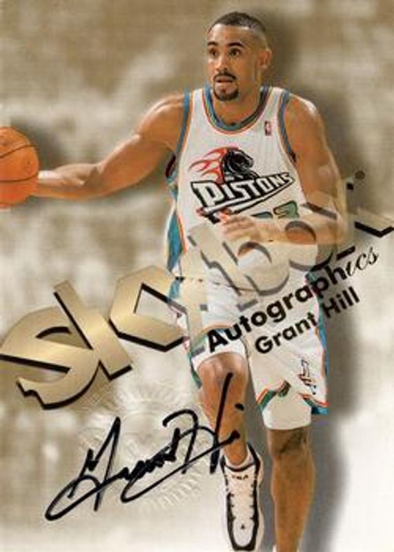 The Grant Hill 1998 Hoops Autographics card is 1 of 12 Grant Hill's card variations in the 1998 Hoops set being tracked by Sports Card Investor, including #165 Base, #33 Base, Promo Sheet Singles, #165 Starting Five /5, and #33 Starting Five /5.