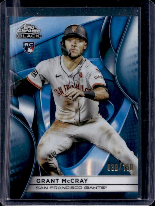 The Grant McCray 2025 Topps Chrome Black #48 Blue Refractor /150 Rookie card is 1 of 17 Grant McCray's card variations in the 2025 Topps Chrome Black set being tracked by Sports Card Investor, including Base, Refractor /199, Blue Lava Refractor /150, Green Refractor /99, and Green Wave Refractor /99.