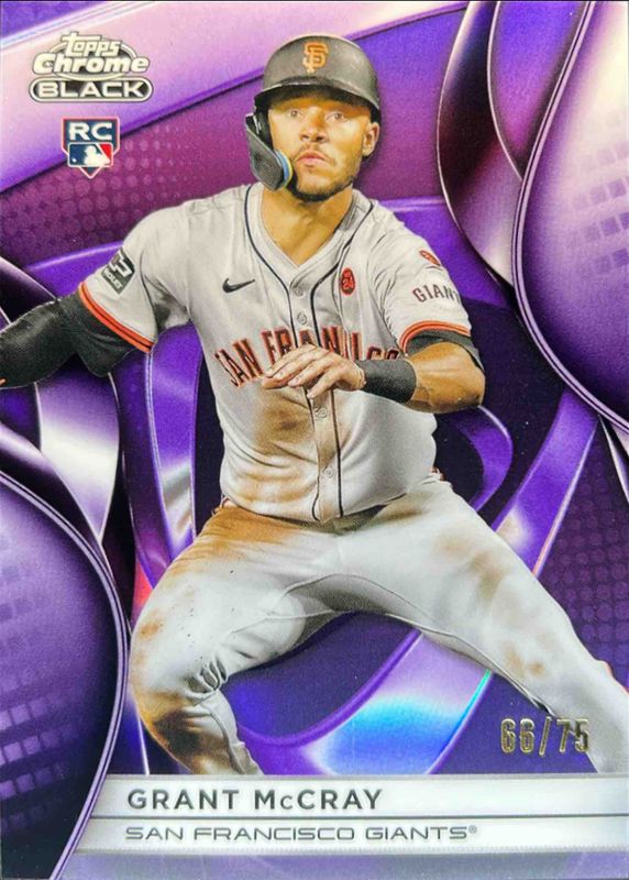 The Grant McCray 2025 Topps Chrome Black #48 Purple Refractor /75 Rookie card is 1 of 17 Grant McCray's card variations in the 2025 Topps Chrome Black set being tracked by Sports Card Investor, including Base, Refractor /199, Blue Lava Refractor /150, Blue Refractor /150, and Green Refractor /99.