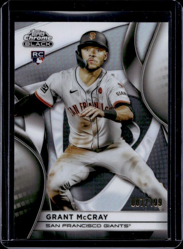 The Grant McCray 2025 Topps Chrome Black #48 Refractor /199 Rookie card is 1 of 17 Grant McCray's card variations in the 2025 Topps Chrome Black set being tracked by Sports Card Investor, including Base, Blue Lava Refractor /150, Blue Refractor /150, Green Refractor /99, and Green Wave Refractor /99.