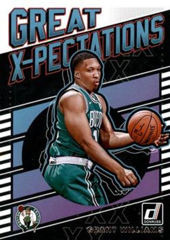 The Grant Williams 2019 Donruss #12 Great X-Pectations Rookie card is 1 of 48 Grant Williams' card variations in the 2019 Donruss set being tracked by Sports Card Investor, including Base, Green Flood, Green & Yellow Laser, Infinite, and Orange Laser.
