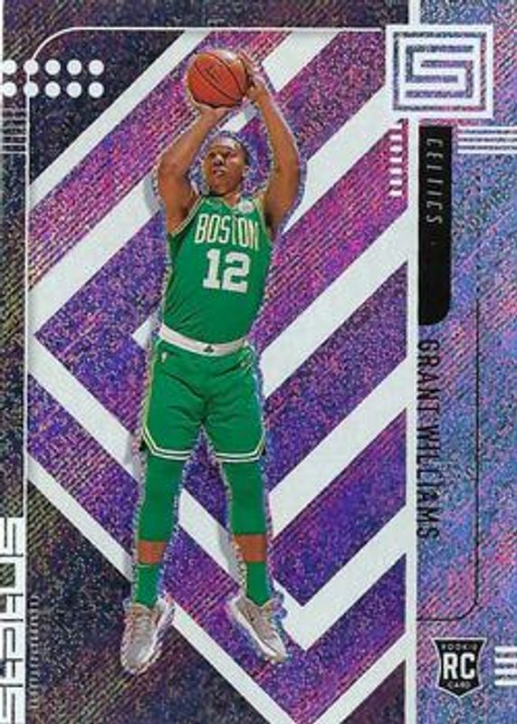 The Grant Williams 2019 Status #152 Base Rookie card is 1 of 22 Grant Williams' card variations in the 2019 Status set being tracked by Sports Card Investor, including Blue, Red, White Diamonds /125, Green Escher Squares /49, and Gold Fireworks /10.