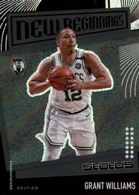 The Grant Williams 2019 Status #11 New Beginnings Rookie card is 1 of 22 Grant Williams' card variations in the 2019 Status set being tracked by Sports Card Investor, including Base, Blue, Red, White Diamonds /125, and Green Escher Squares /49.