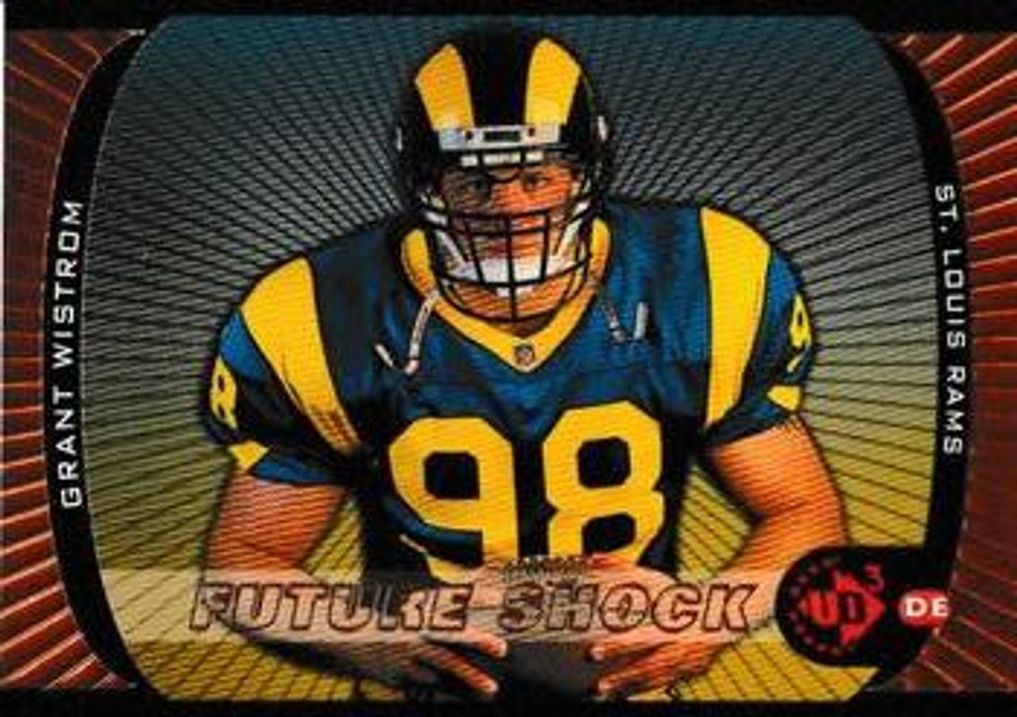 The Grant Wistrom 1998 Upper Deck UD3 #6 Base Rookie card is 1 of 6 Grant Wistrom's card variations in the 1998 Upper Deck UD3 set being tracked by Sports Card Investor, including #186 Base, #96 Base, #186 Die-Cut /2000, #6 Die-Cut /2000, and #96 Die-Cut /2000.