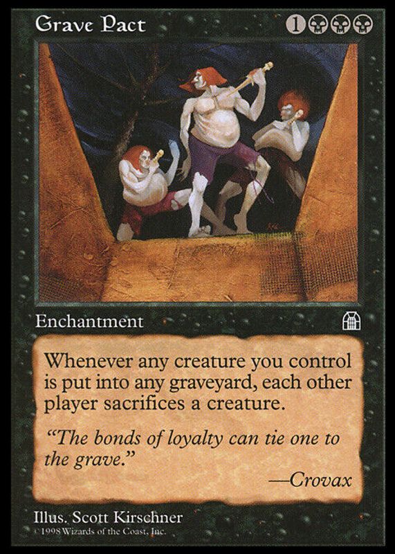 The Grave Pact 1998 Stronghold Base card in Raw TCG (Lightly Played) condition has moved up $2.00 (+10.0%) in the last 30 days and was last sold for $22.00 .