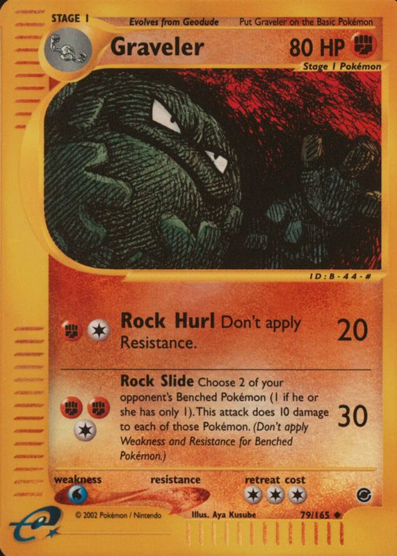 The Graveler 2002 Expedition #079/165 Reverse Holo card in Raw TCG (Near Mint) condition has not changed in price in the last 30 days and was last sold for $14.57 .