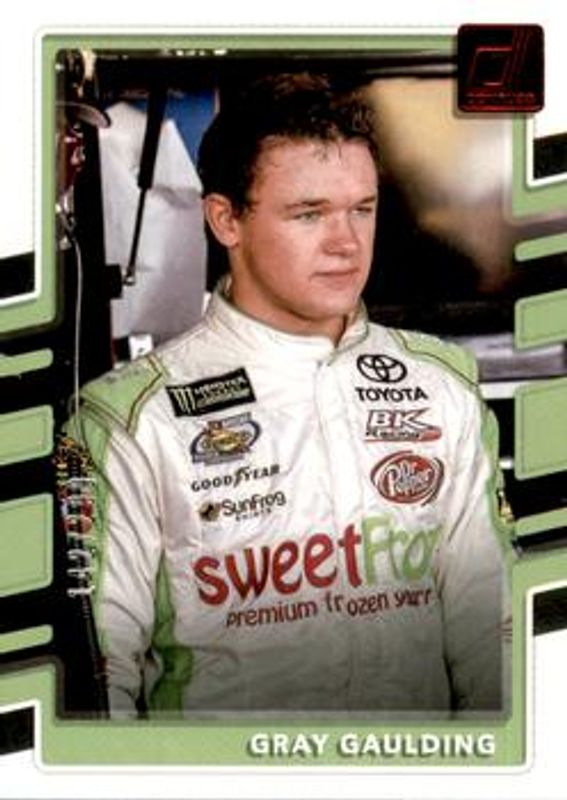 The Gray Gaulding 2018 Donruss NASCAR #64 Red Foil /299 card is 1 of 17 Gray Gaulding's card variations in the 2018 Donruss NASCAR set being tracked by Sports Card Investor, including Base, Gold Foil /499, Green Foil /199, Press Proof Gold /99, and Press Proof Holofoil /49.