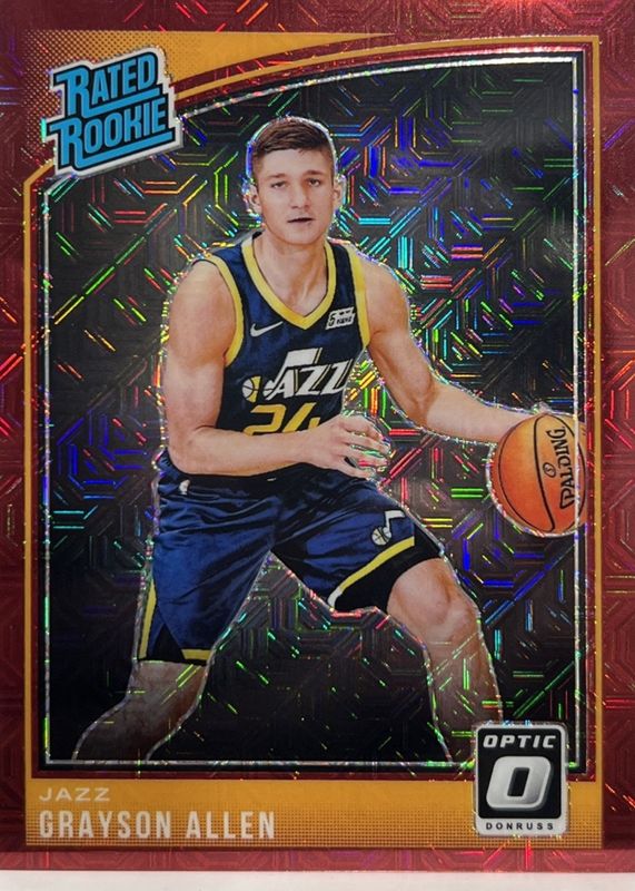 The Grayson Allen 2018 Optic #156 Choice Red /88 Rookie card in Raw condition has not changed in price in the last 30 days and was last sold for $1.25 .