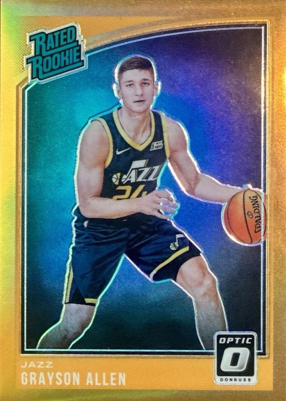 The Grayson Allen 2018 Optic #156 Orange /199 Rookie card in Raw condition has not changed in price in the last 30 days and was last sold for $7.99 .