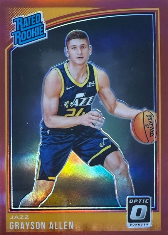 The Grayson Allen 2018 Optic #156 Red /99 Rookie card in Raw condition has not changed in price in the last 30 days and was last sold for $5.99 .
