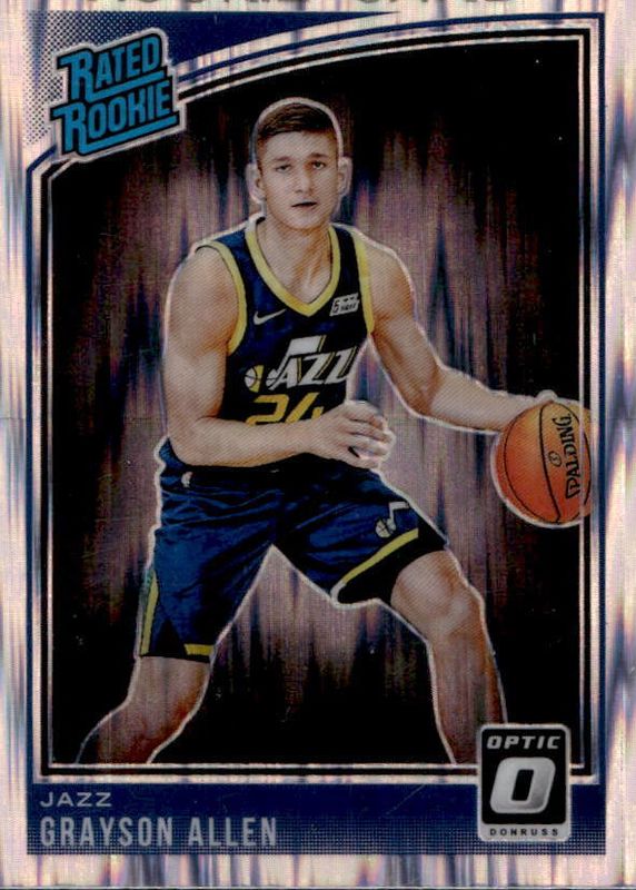 The Grayson Allen 2018 Optic #156 Shock Rookie card in Raw condition has not changed in price in the last 30 days and was last sold for $0.99 .