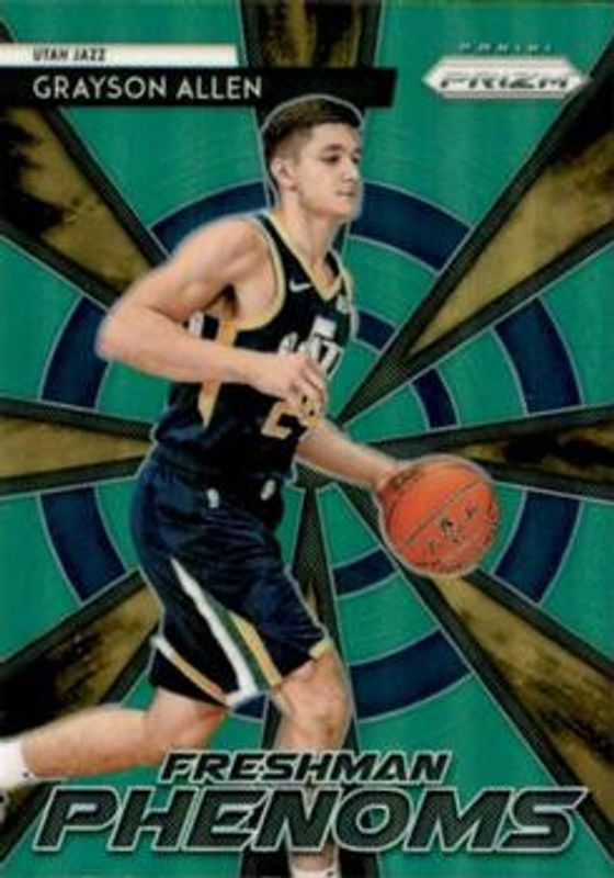 The Grayson Allen 2018 Prizm #5 Freshman Phenoms - Green Rookie card is 1 of 53 Grayson Allen's card variations in the 2018 Prizm set being tracked by Sports Card Investor, including Base, Choice Blue Yellow Green, Fast Break, Green, and Hyper.