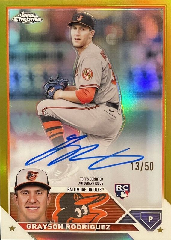 Best Prices Available For Sale of Grayson Rodriguez 2023 Topps Chrome #RA-GR Rookie Autographs - Gold Refractor /50