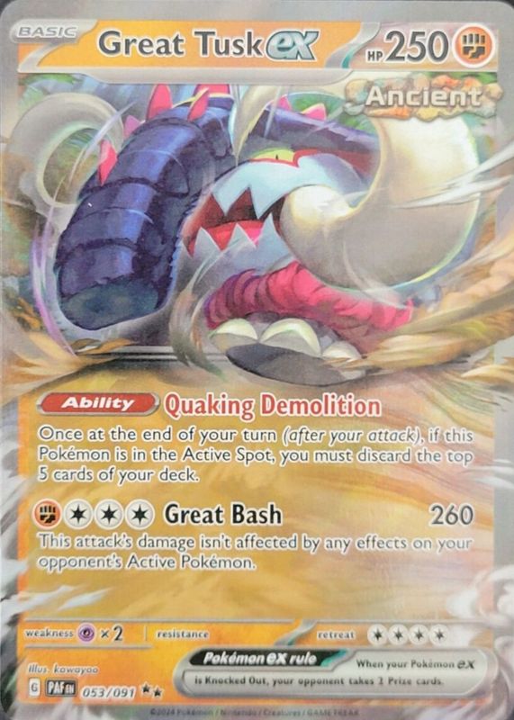 Pokemon Great Tusk ex 053/091 Paldean Fates Double Rare Holo NM