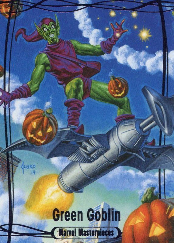 This card is 1 of 3 Green Goblin's card variations in the 2016 Upper Deck Marvel Masterpieces set being tracked by Sports Card Investor, including Base (/999), and Orange Foil /99.