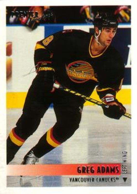 The Greg Adams 1994 O-Pee-Chee Premier #414 Base card is 1 of 2 Greg Adams' card variations in the 1994 O-Pee-Chee Premier set being tracked by Sports Card Investor, including Special Effects.