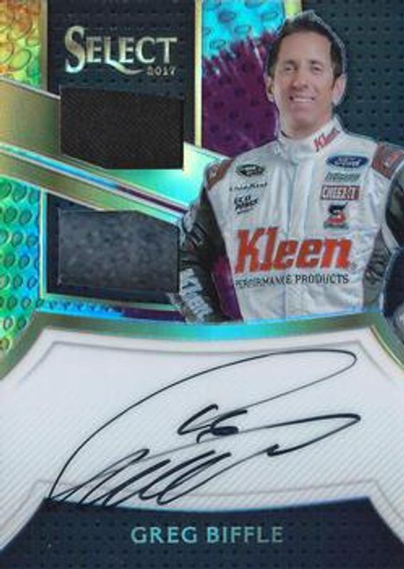 Greg Biffle 2017 Select NASCAR #SSD-GB Signatures Swatches Duals Tie-Dye /24 RAW Price Guide
