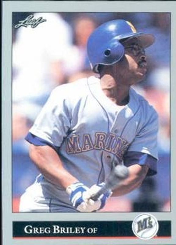 The Greg Briley 1992 Leaf #65 Base card is 1 of 2 Greg Briley's card variations in the 1992 Leaf set being tracked by Sports Card Investor, including Black & Gold.