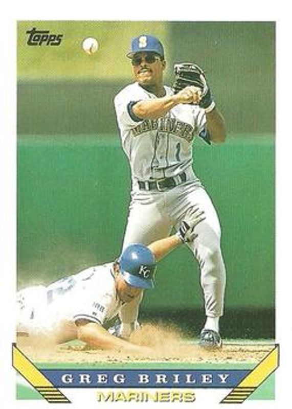 The Greg Briley 1993 Topps #14 Base card is 1 of 2 Greg Briley's card variations in the 1993 Topps set being tracked by Sports Card Investor, including Gold.