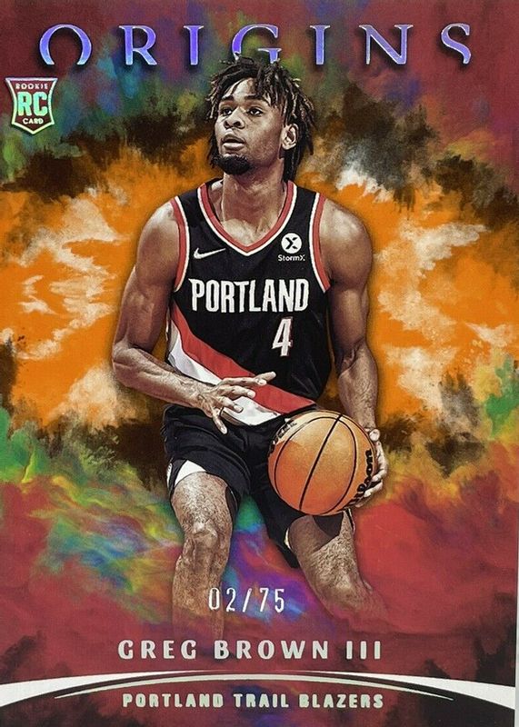 This card is 1 of 11 Greg Brown III's card variations in the 2021 Origins set being tracked by Sports Card Investor, including Base, Red, Blue /99, Pink /60, and Turquoise /25.