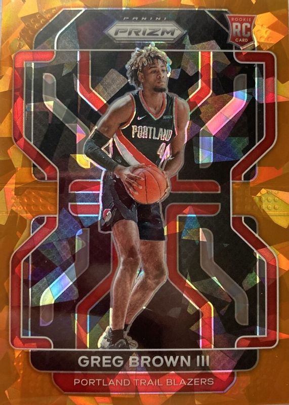 2021-22 Panini PRIZM Orange Cracked Ice Greg Brown III RC Rookie #291 Blazers