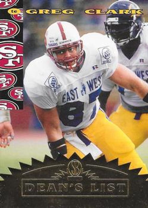 The Greg Clark 1997 Score Board Rookies #64 Dean's List card is 1 of 2 Greg Clark's card variations in the 1997 Score Board Rookies set being tracked by Sports Card Investor, including Base.