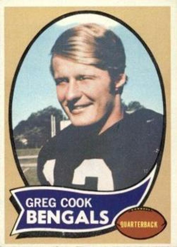The Greg Cook 1970 Topps #235 Base Rookie card is 1 of 2 Greg Cook's card variations in the 1970 Topps set being tracked by Sports Card Investor, including Glossy.