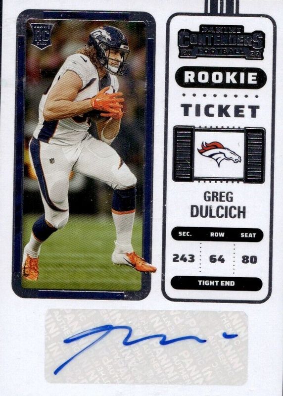 Greg Dulcich 2022 Contenders #185 Rookie Ticket Auto RAW Price Guide