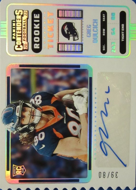 2022 Contenders Greg Dulcich Variation Rookie Ticket Stub Auto RC #05/80 Broncos