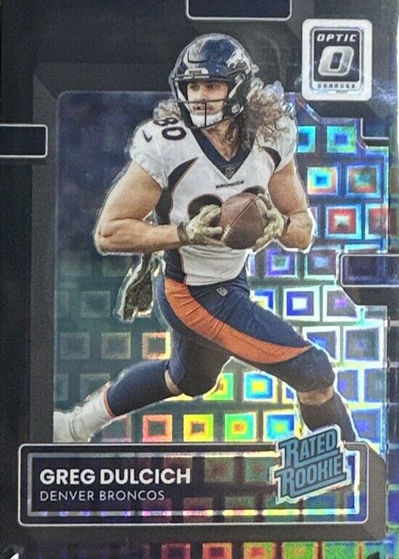 This card is 1 of 45 Greg Dulcich's card variations in the 2022 Optic set being tracked by Sports Card Investor, including Base, Holo, Holo Variation, Pink, and Purple Shock.