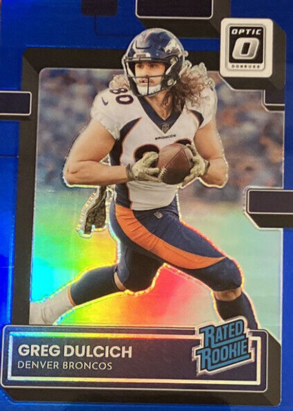 2022 Donruss Optic Greg Dulcich RR Rookie Blue Holo /179 #288 Denver Broncos NFL