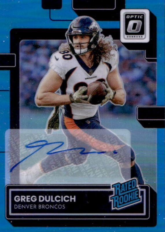 2022 Donruss Optic Greg Dulcich Rated Rookie Auto Blue RC #14/99 Broncos