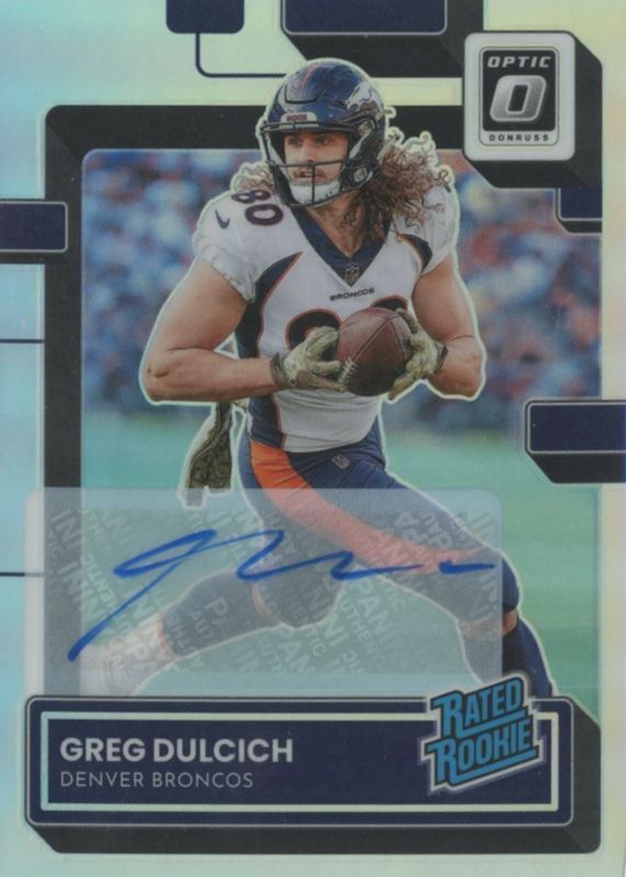 2022 Donruss Optic Greg Dulcich Holo Prizm Rated Rookie Auto RC /125 Broncos SP