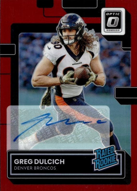 Greg Dulcich 2022 Optic #288 Rated Rookie Autographs - Red /75 RAW Price Guide