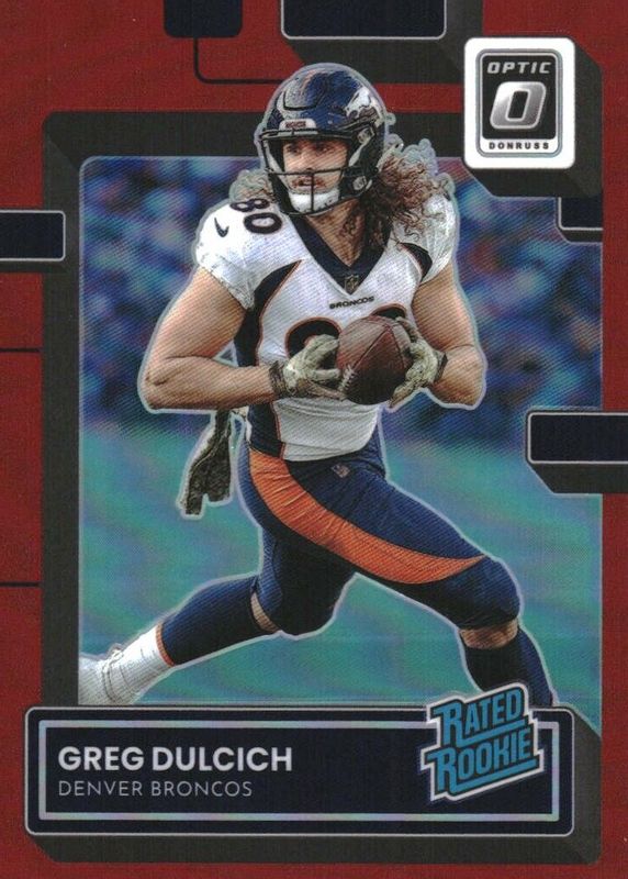 2022 Donruss Optic 288 Greg Dulcich Red 36/99 Broncos Rated Rookie